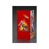 La façade et les côtés du distributeur présentent des illustrations de robots et de personnages, ainsi que le logo de la série.