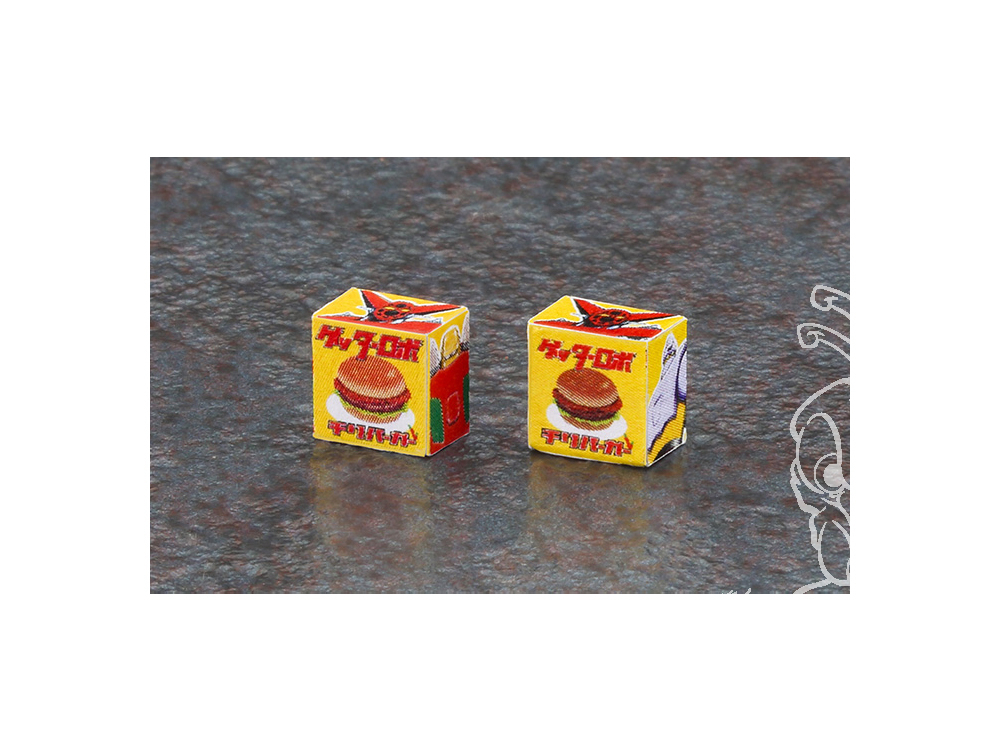 Un kit pour construire un distributeur automatique de hamburgers au design original, orné d'illustrations et de logos de « Getter Robo ».