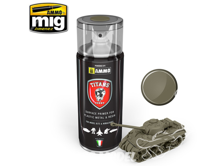 Peinture bombe Apprêt vert Olive US Mat - U.S. Olive Drab Matt Primer 400ml par Titans Hobby.