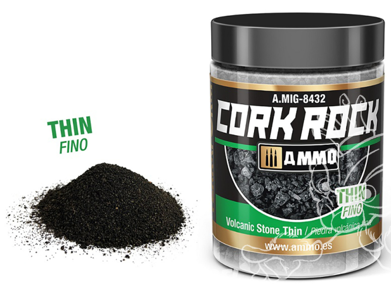 Produit en granulés de liège teinté de haute qualité de couleur noire pour représenter les pierres et les gravats sur les zones volcaniques. Disponible en trois tailles différentes, ou un mélange des trois tailles, pour mieux répondre aux besoins de chaque modéliste.