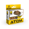 Les peintures ATOM ont une formule acrylique qui offre tous les avantages d'une laque et est optimisée pour une performance maximale au pinceau et à l'aérographe. Leurs caractéristiques incluent un nivellement automatique, un séchage rapide et un pouvoir couvrant unique sur le marché. De plus, leur durabilité exceptionnelle permet l'utilisation d'acryliques, de laques, d'énamel ou de produits plus agressifs comme les solutions de décalcomanie une fois sèches. Elles sont présentées dans un nouveau flacon transparent de 20 ml avec un bouchon compte-gouttes vertical pratique qui s'ouvre et se ferme d'une seule main. Cette peinture est non toxique et inodore. Elle peut être appliquée directement au flacon ou diluée avec le diluant et nettoyant ATOM ATOM-20500/20510/20520, ou le diluant et nettoyant ATOM avec retardateur ATOM-20501/20511/20521. Nous conseillons une dilution d'environ 30%.