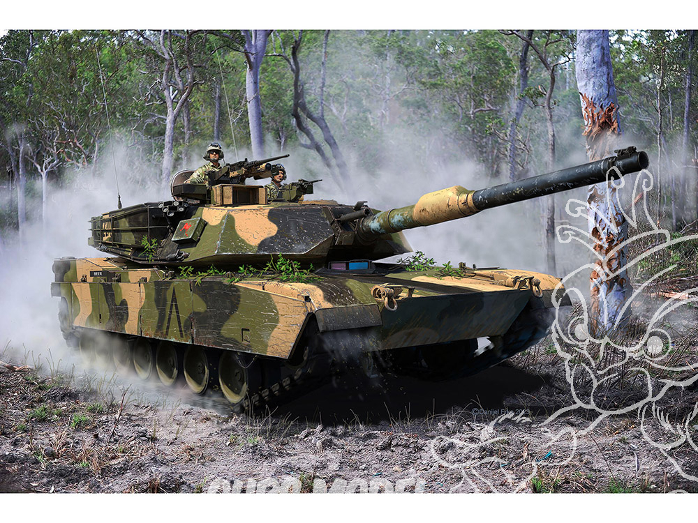 Kit de modélisme du blindé de combat américain moderne M1A1 AIM (SA)/M1A2 Abrams. Ils sont des évolutions du M1A1 et disposent d'un système d'arme téléguidé amélioré et d'une capacité de protection accrue. . Chenille moulée par injection sous pression avec maillons individuels et sections partielles . Tourelle rotative . Trappes de tourelle ouvrables en option Représentation authentique des versions suivantes: - M1A2 Abrams 194th Brigade Task Force 1-70 AR NTC - National Training Center, Fort Irwing, California, 1995 - M1A1 Abrams Australian Army, Armoured Cavalry Regiment B Squadron, 3 Troop 1st Adelaide, South Australia 2015 En plus des couleurs de base, des adhésifs et des pinceaux sont également inclus.