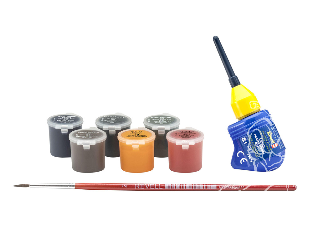 - Tout est inclus : colle, pinceaux et couleurs de base Revell (Aqua Color) pour un démarrage facile.