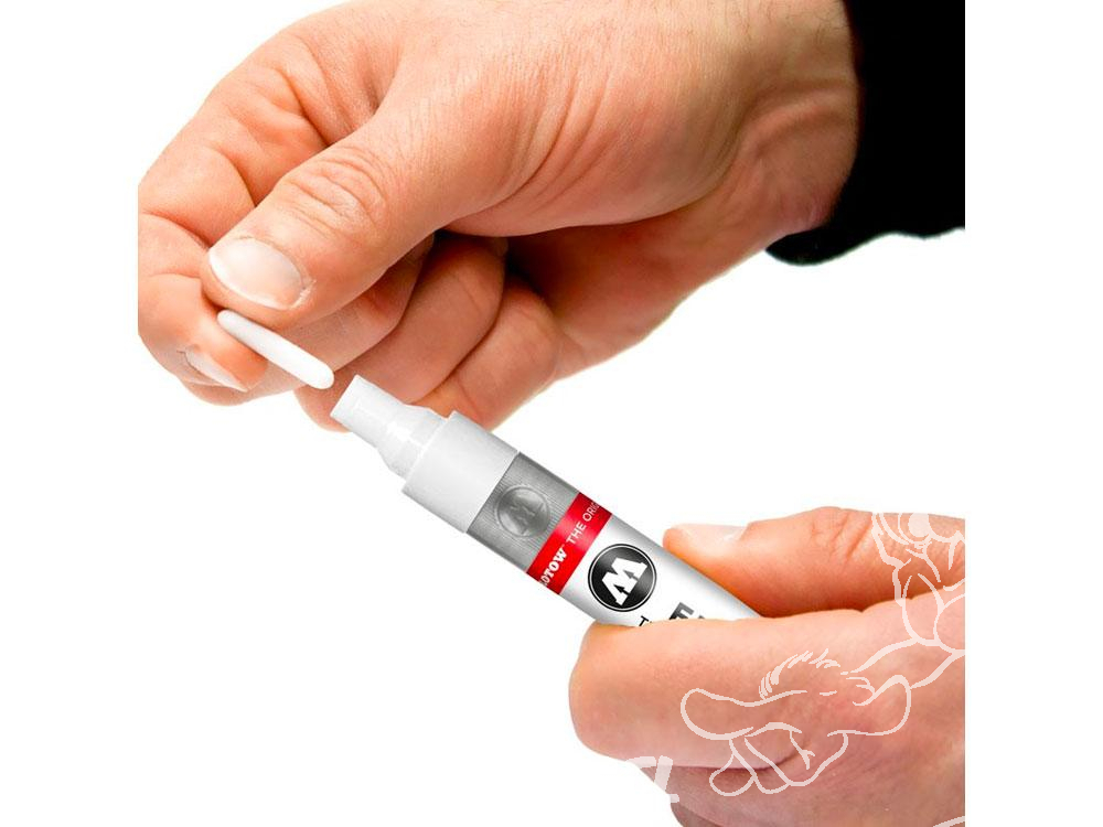 Deux embouts différents (1,5 mm et 4 mm) permettent de préparer cet acrylique classique. De plus, le marqueur de pompe est équipé de l'extension de remplissage B - le marqueur peut donc être rechargé proprement et assure également une plus grande quantité de remplissage.