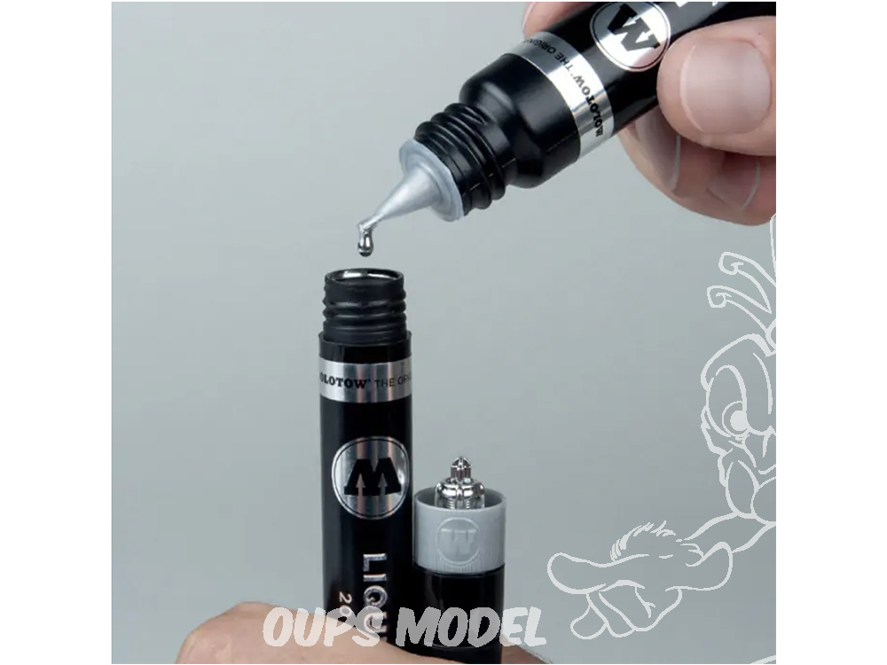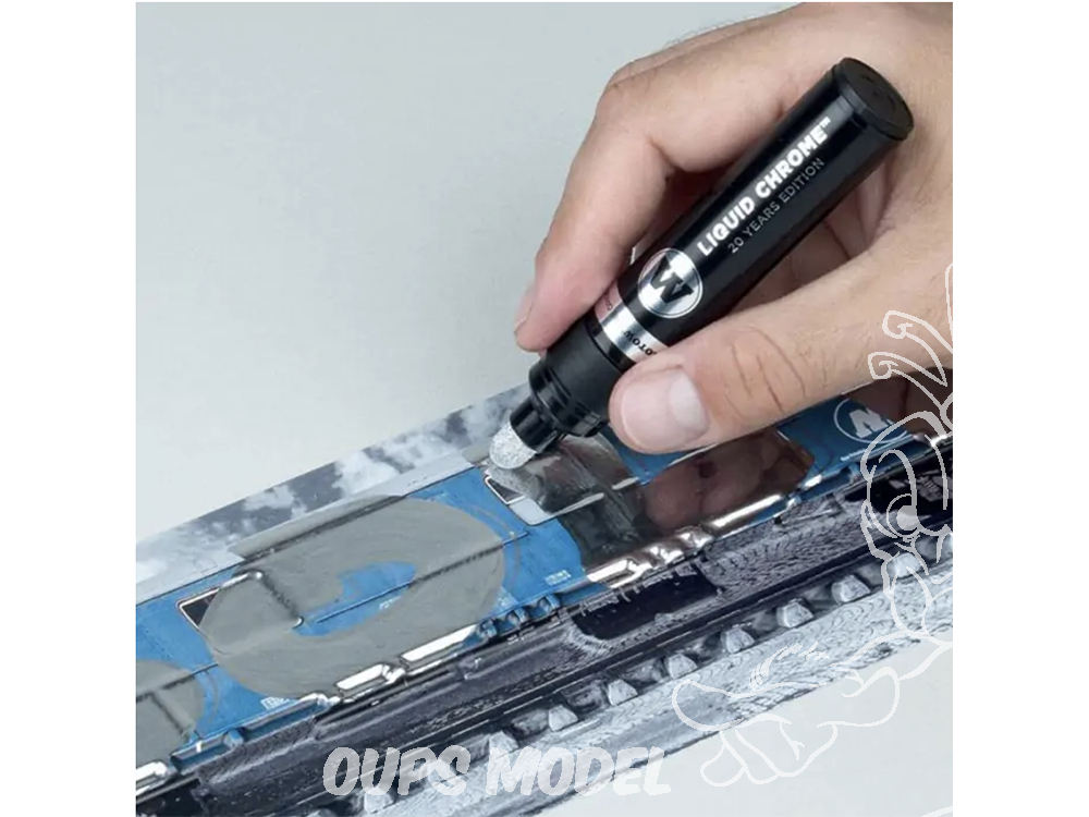 Les feutres Liquid Chrome sont rapidement devenus incontournables dans le monde du maquettisme, grâce à leur encre effet miroir, opaque et ultra brillante. Plébiscités pour la peinture de modèles réduits, ces feutres chrome peuvent être utilisés pour tous vos projets créatifs. Pour obtenir le meilleur effet, nous vous conseillons de les utiliser de préférence sur un support lisse et non poreux. Fidèles à l'esprit Molotow, les marqueurs Liquid Chrome sont rechargeables, et munis de mines remplaçables au besoin. Disponibles en 6 tailles, ils vous promettent un rendu chromé incroyablement brillant, qui ne passera pas inaperçu.