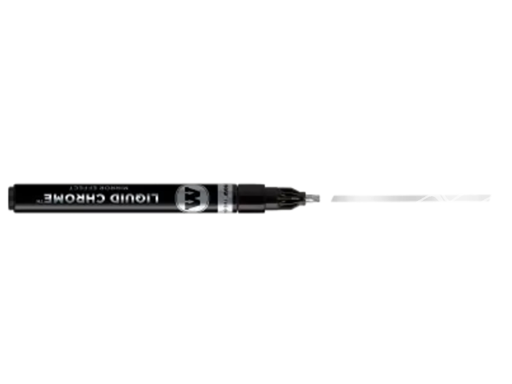 Les feutres Liquid Chrome sont rapidement devenus incontournables dans le monde du maquettisme, grâce à leur encre effet miroir, opaque et ultra brillante. Plébiscités pour la peinture de modèles réduits, ces feutres chrome peuvent être utilisés pour tous vos projets créatifs. Pour obtenir le meilleur effet, nous vous conseillons de les utiliser de préférence sur un support lisse et non poreux. Fidèles à l'esprit Molotow, les marqueurs Liquid Chrome sont rechargeables, et munis de mines remplaçables au besoin. Disponibles en 6 tailles, ils vous promettent un rendu chromé incroyablement brillant, qui ne passera pas inaperçu.