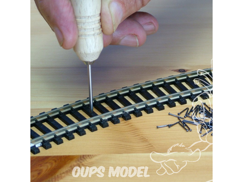 Ce pousse-goupilles de poche, doté d'un manche en bois de qualité, est idéal pour la pose de rails miniatures de calibre N sur des planches ou pour clouer des maquettes de bateaux en bois, des maisons de poupées et des cadres photo. Peut enfoncer des goupilles dans du contreplaqué de 9 mm.