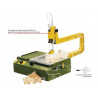 Surface de travail fraisée à plat (en aluminium coulé sous pression, 160 x 160mm). Bâti en ABS à porte latérale coulissante et compartiment pour les lames de scie. Moteur 220 x 240V (85 Watts), certifié VDE, silencieux et durable. Entraînement silencieux et résistant à l'usure par courroie crantée, montée sur roulement.