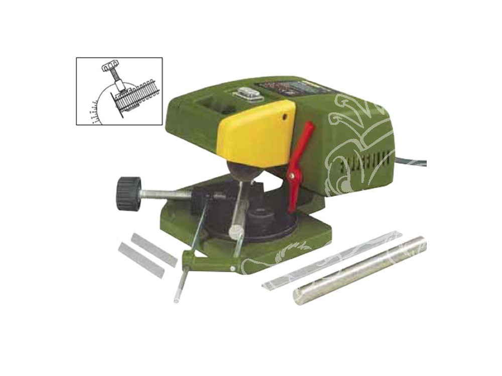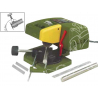 220 - 240 V. 85W. 50 - 60Hz. Vitesse de coupe 20m/sec. Table de travail 130 x 100mm. Poids 1,5kg.