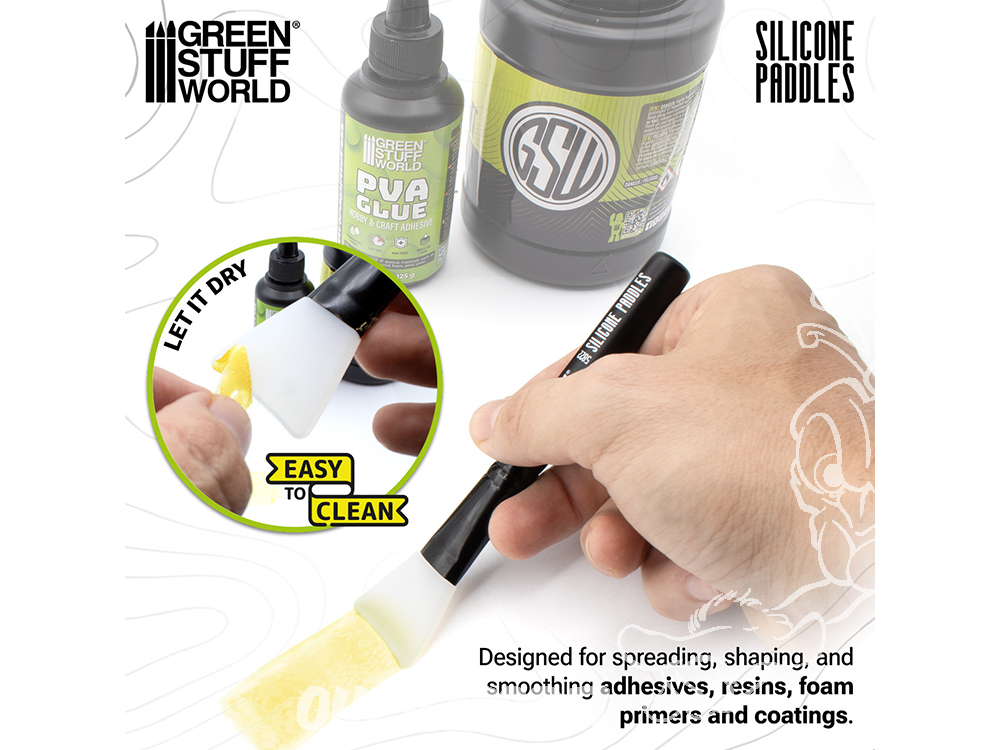 Avec les spatules en silicone de Green Stuff World, vous obtiendrez des résultats uniformes et de qualité professionnelle à chaque fois. Elles sont conçues pour faciliter le nettoyage, appliquer la colle de manière impeccable et offrir une polyvalence maximale sur une grande variété de surfaces : mousse, plastique, résine, bois et bien plus encore.