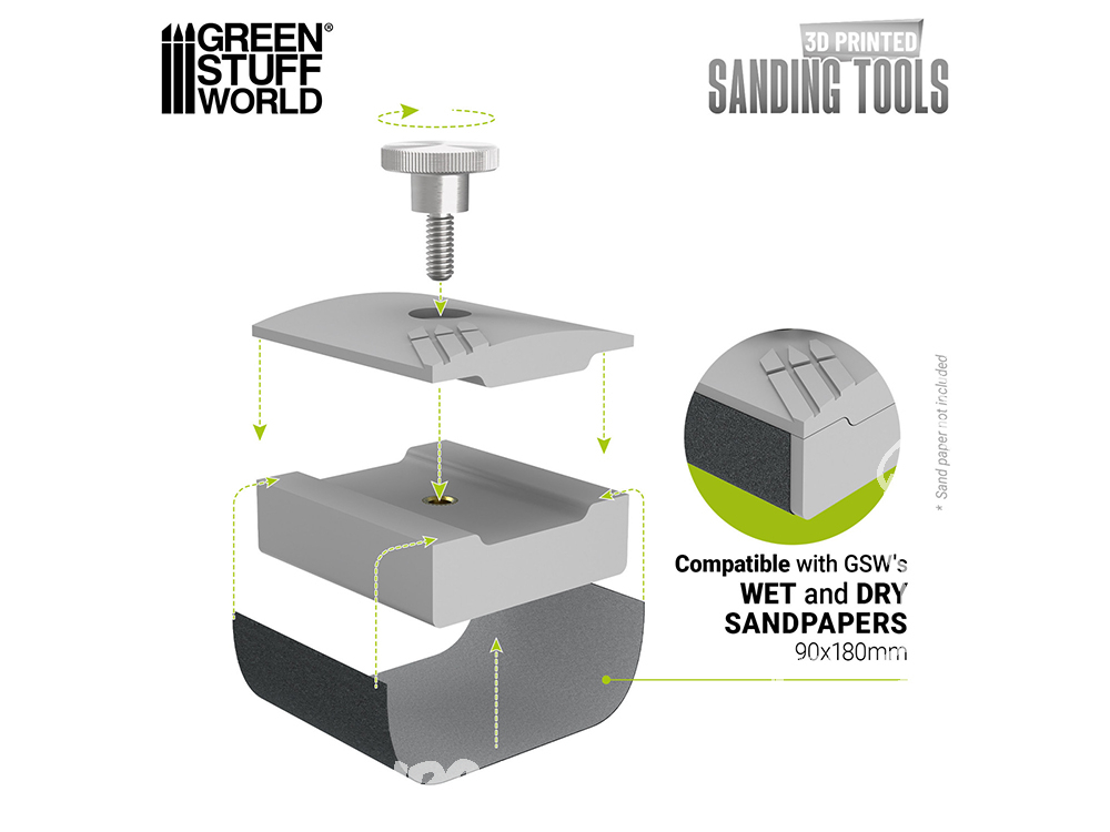 Le porte-papier abrasif manuel ou ponceuse manuelle plat Green Stuff World est un outil à la fois robuste et léger, imprimé en PLA haute résistance, qui offre la solution idéale pour obtenir des surfaces impeccables en modélisme, wargames, maquettes et cosplay. Sa conception ergonomique assure une prise en main confortable et précise, permettant aussi bien le dégrossissage que le polissage fin de figurines, pièces imprimées en 3-D ou armures en mousse EVA.