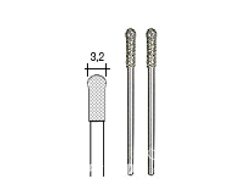 Revêtement diamanté régulier. Profil de la tête et axe en acier inox. Pour le meulage, gravure et ciselage d'acier (aussi alliages au chrome-cobalt), de verre, de céramique, de porcelaine et de plastique. Axe Ø 2,35. Toutes les dimensions sont en mm.
