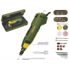 Pour percer, fraiser, meuler, poncer, brosser, couper et graver. Avec régulation électronique de 5.000 à 20.000 tr/min. Couple quasi constant même à bas régime (particulièrement important pour le perçage de précision, le brossage et le polissage). Boîtier robuste en POLYAMIDE renforcé de fibre de verre et zone de prise en main en matière douce. Maindrin de serrage rapide pour des tiges de 0,3 à 3,2mm. Axe monté sur roulement à billes (changement d'outil par simple pression sur le bouton entraînement le blocage de l'axe). Col de 20mm pour supports de perçage et supports horizontaux MICROMOT. Moteur spécial DC équilibré (100W), puissant et silencieux à longévité accrue.