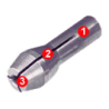 Les pinces de serrage MICROMOT en acier sont trempées, ce qui leur confère une élasticité élevée et constante . Elles conservent la précision nécessaire même après un long usage (incomparables à des pinces de serrage non trempées à 4 fentes ou à celles en laiton ou en aluminium. La triple fente qui est beaucoup plus difficile à réaliser qu’une fente quadruple, permet d’obtenir une meilleure assise. Cela est particulièrement important pour le centrage des tiges à faible diamètre.