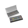 Cet élégant coffret rigide gris contient la gamme complète avec les 34 couleurs réparties dans deux plateaux en mousse, une boîte sérigraphiée et un système de fermeture magnétique.