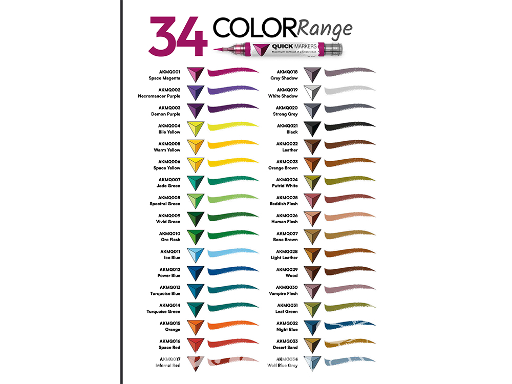 QUICK MARKERS est un nouvel outil pour les amateurs débutants et les peintres confirmés qui souhaitent expérimenter et disposer d'une méthode rapide et pratique pour peindre des figurines, offrant également d'excellents résultats. Ces marqueurs contiennent une peinture spéciale de haute qualité.