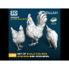 Ensemble de figurines à l'échelle 1:35 « Poules et Coq ». Ces figurines, réalisées par impression 3D en résine photopolymère de haute qualité, présentent un niveau de détail exceptionnel. L'ensemble comprend deux poules et un coq, reproduisant fidèlement les contours réalistes de ces volailles. Couramment présentes dans le monde agricole, les poules et les coqs sont des éléments essentiels pour la création de dioramas ou de scènes rurales réalistes. Les modèles reproduisent avec précision les postures, le plumage et les traits de la tête des oiseaux. Idéal pour les collectionneurs, les maquettistes et pour la réalisation de dioramas représentant des scènes de la vie rurale ou quotidienne.