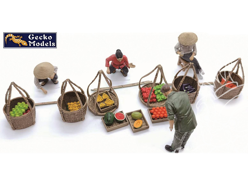 Gecko Models maquettes militaire 35GM0123 Ensemble de vendeurs de fruits et légumes de rue de Saigon figurines inclus 1/35