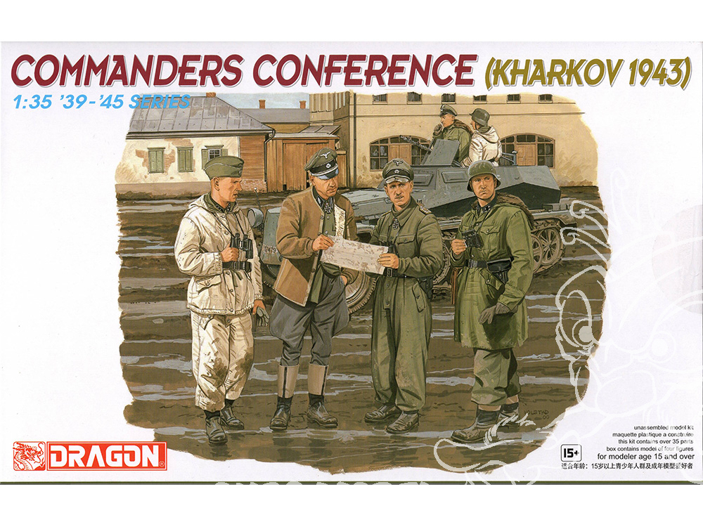 Ce kit représente quatre commandants SS nouvellement modélisés, portant différents uniformes, lors d'une réunion à Kharkov. Ils sont représentés en Max Hansen (commandant du 2e bataillon du 1er régiment de grenadiers blindés SS) en parka d'hiver, Fritz Witt (commandant du 1er régiment de grenadiers blindés SS) en manteau de peau de mouton, Kurt Meyer (commandant du 1er bataillon de reconnaissance SS, division LAH) en combinaison blindée et Bernhard Krause (commandant du 1er bataillon de Flak SS) en anorak doublé de fourrure. Ils portent leur équipement personnel : jumelles, porte-cartes et pistolet.