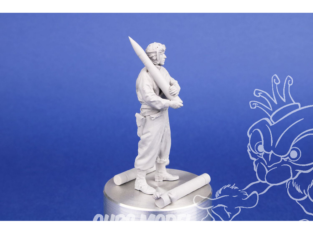 Figurine de chargeur de grande qualité, conçue pour la tourelle ouverte du chasseur de chars américain M36 Jackson. Le chargeur, en position naturelle, tient un obus de 90 mm. Il peut également tenir l'obus dans son étui.