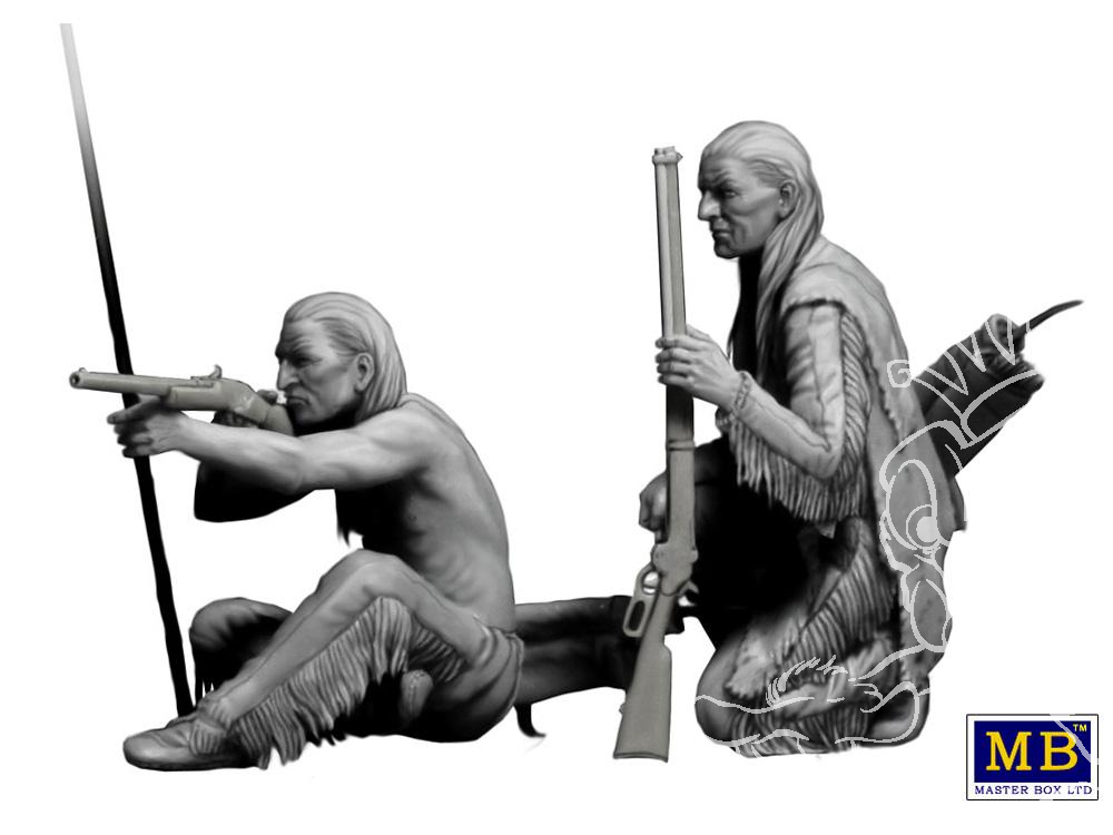 Master Box maquette figurines 35128 GUERRIERS SIOUX TIR A DISTANCE Serie Guerres Indiennes 1/35