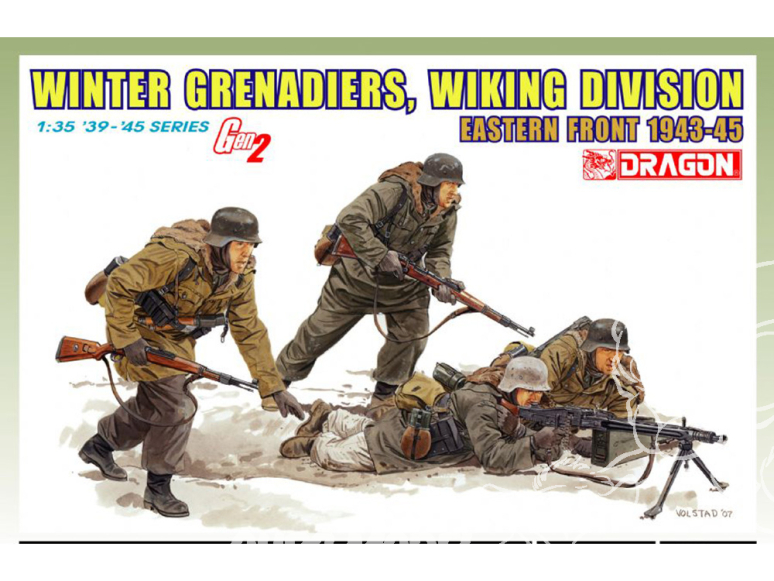 Quatre figurines sont incluses dans l'ensemble de soldats de la division Wiking de Dragon. Ils sont habillés pour l'hiver russe très froid, vêtus d'anoraks doublés de fourrure (premier modèle) et de pantalons d'hiver. C'est la première fois que des figurines Gen2 apparaissent dans de tels anoraks, et elles sont reproduites en parties séparées pour fournir un maximum de détails et l'aspect naturel de leur motif distinctif.
