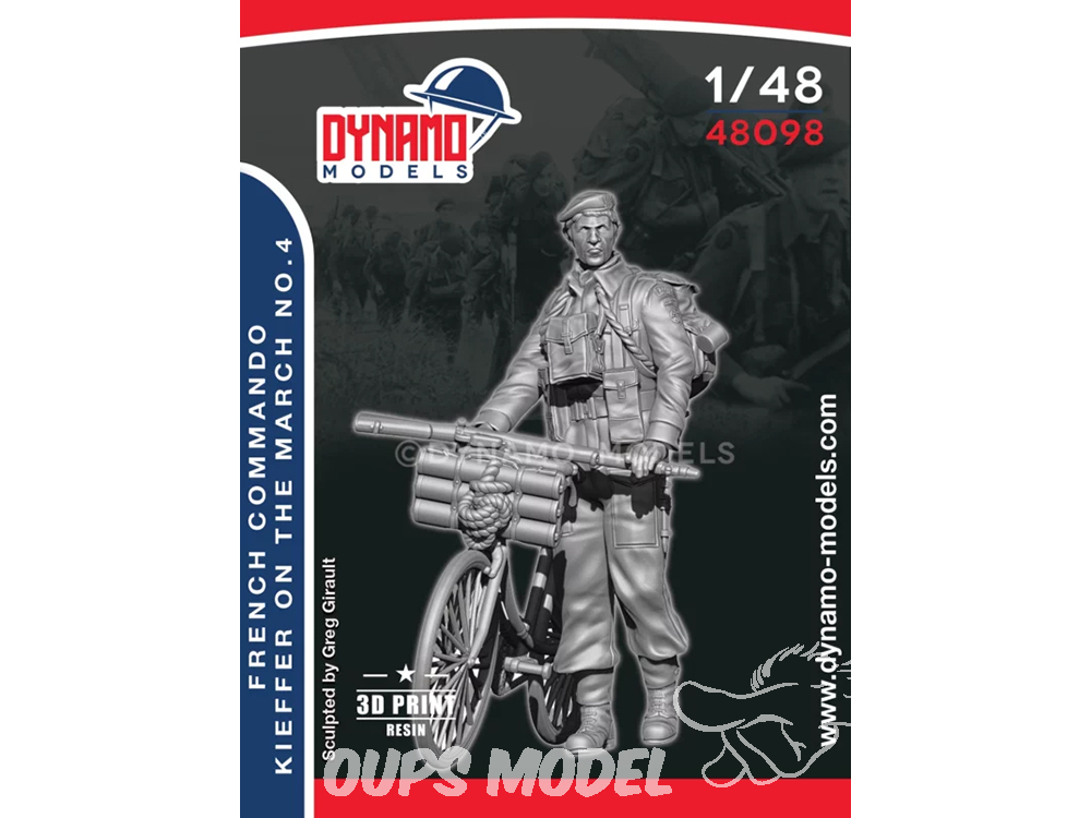 Dynamo models figurine 48098 Commando Kieffer Français en marche WWII avec bicyclette No.4 1/48