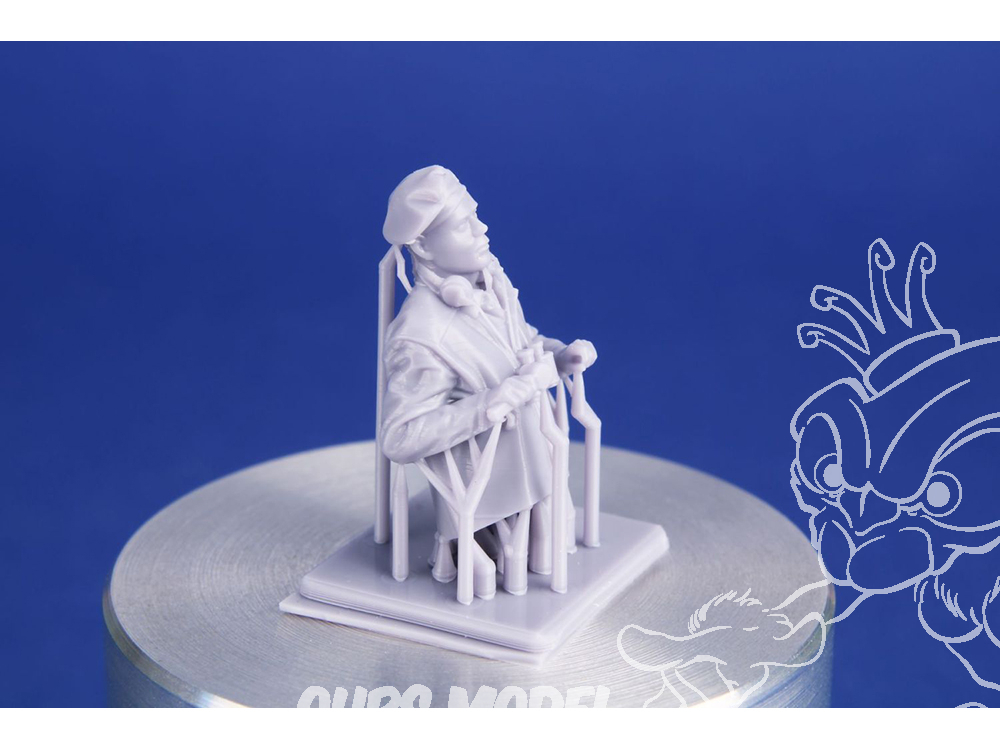Figurine à mi-hauteur d'un commandant de char britannique, fin de la Seconde Guerre mondiale. Imprimée en 3D, elle se distingue par son niveau de détail et son réalisme.