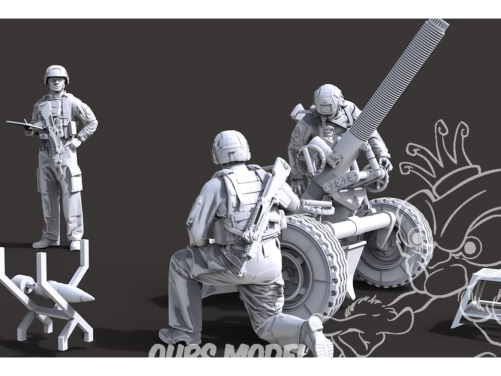 • Un équipage complet de servants en posture dynamique : chargement, tir, coordination