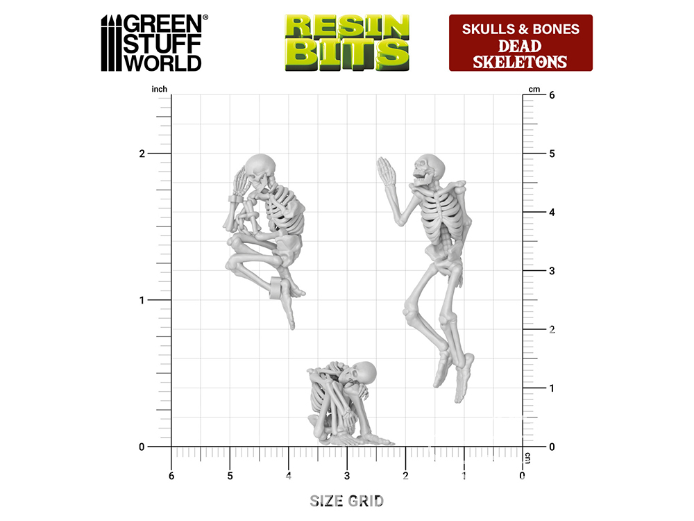 Apportez un nouveau niveau de réalisme et de dramatisme à vos socles de figurines, dioramas et éléments de décor grâce à notre ensemble de squelettes humains complets en résine de haute qualité, conçu pour ajouter du suspense, une dimension narrative et une ambiance à n'importe quel décor. Cet ensemble comprend des squelettes dans différentes positions et sans éléments qui les limitent à une époque ou à un univers particulier, ce qui les rend totalement polyvalents. Grâce à leur niveau de détail, ils sont parfaits aussi bien pour les donjons fantastiques médiévaux, les décors post-apocalyptiques ou futuristes, que pour les champs de bataille historiques ou les scènes d'horreur.
