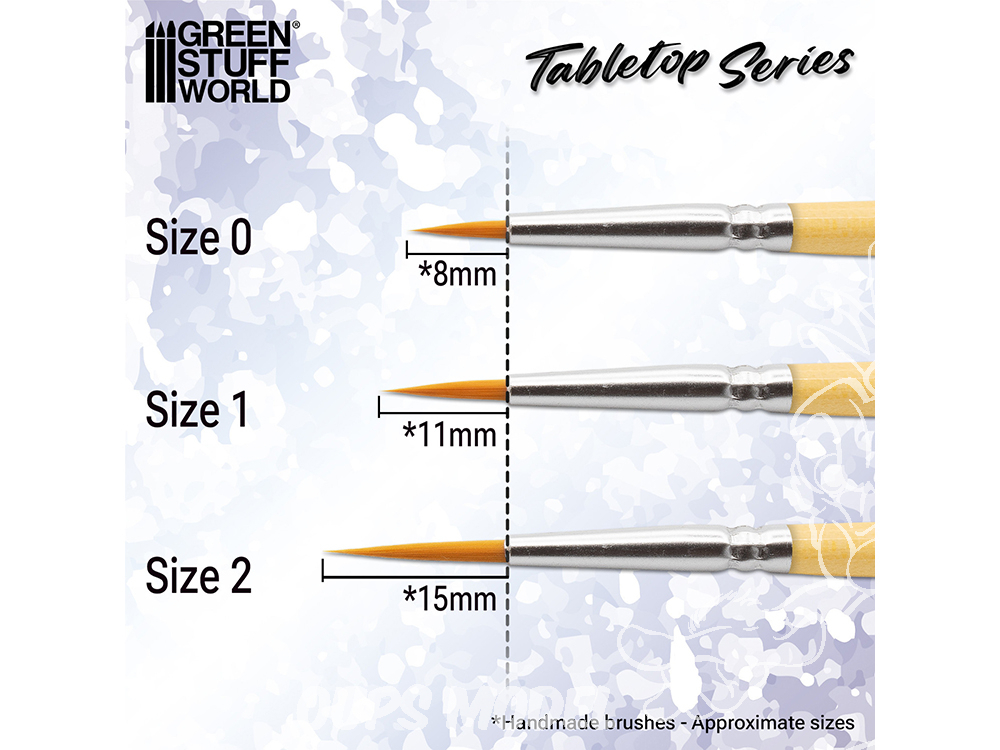 Les pinceaux synthétiques de la gamme Tabletop de Green Stuff World sont idéaux aussi bien pour les peintres débutants que pour les modélistes confirmés. Disponibles en trois tailles essentielles (n° 0, n° 1 et n° 2), ils offrent une grande polyvalence et s'adaptent à différentes techniques de peinture.