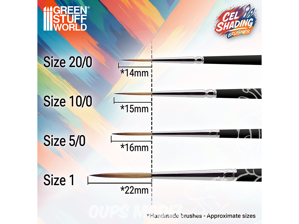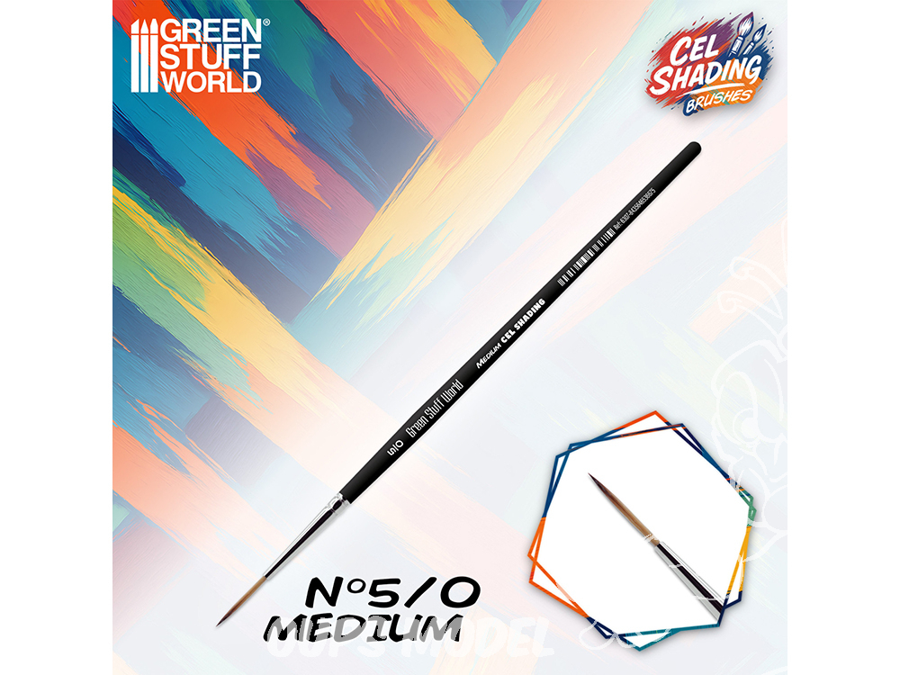 Les pinceaux Cel Shading sont spécialement conçus pour peindre des miniatures et des figurines de style anime à l'aide de techniques d'ombrage plat. Cette technique, basée sur le cel shading de l'animation japonaise, cherche à représenter les lumières et les ombres à l'aide de blocs de couleur bien définis, sans estompage ni transitions douces, afin d'obtenir un effet visuel similaire à celui d'une illustration 2D sur une figure 3D.