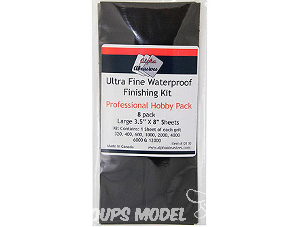 Chaque projet de maquetiste nécessite un processus de finition unique, mais certains peuvent nécessiter un peu plus de détails que d'autres. Ce kit est l'assortiment abrasif le plus complet sur le marché. Ce produit est indispensable pour tous les modélistes sérieux qui exigent de la qualité! Le kit de finition étanche ultra fin contient une feuille de chaque grain 320, 400, 600, 1000, 2000, 4000, 6000 et 12 000. Il est lavable, réutilisable et étanche!