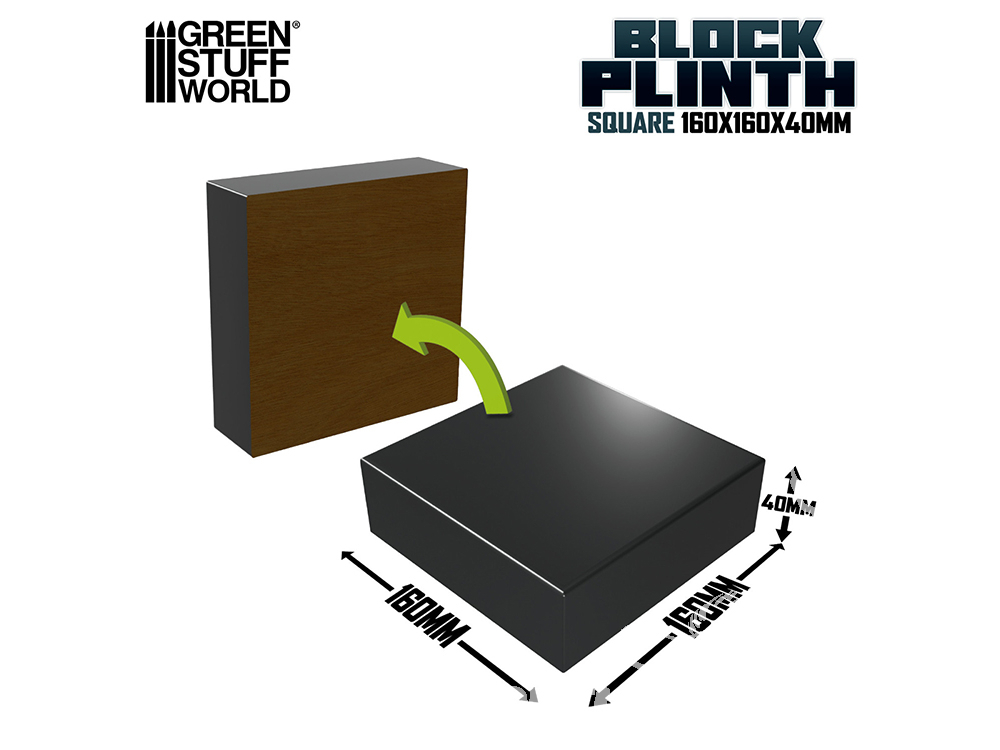 Green Stuff 5813 Socle en Bois Carré 16x16 cm Noir