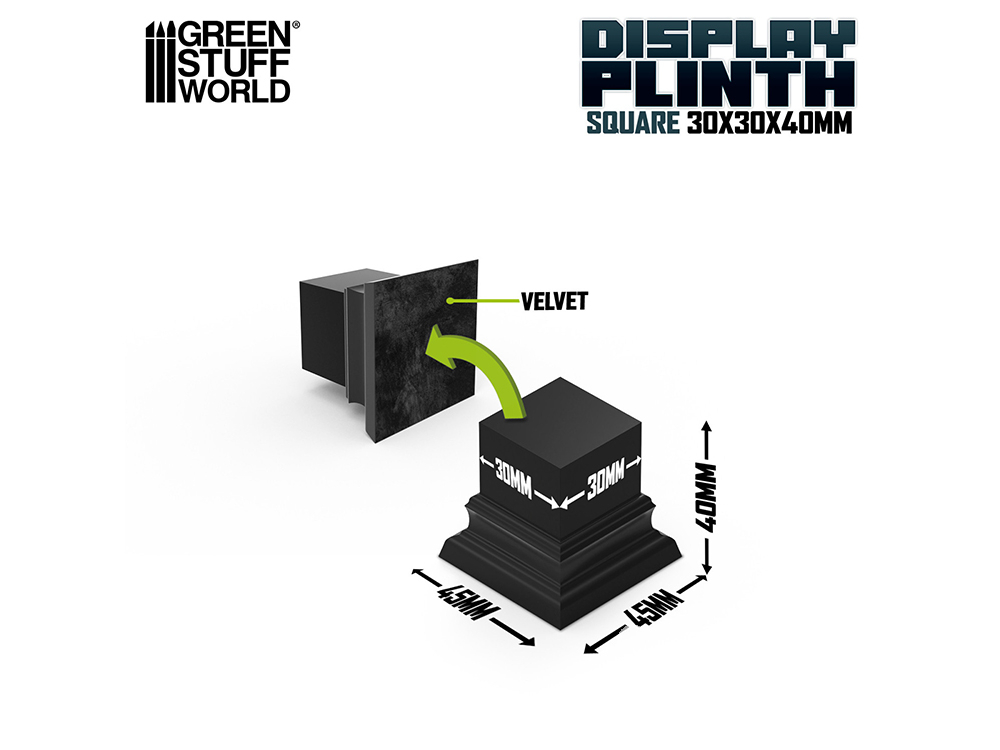 Green Stuff 5802 Socle en Bois de présentation Carré 3x3 cm Noir