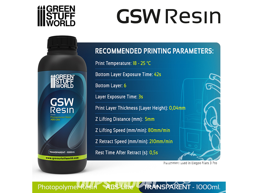 - Agiter le flacon avant utilisation et éviter d'utiliser en plein soleil la resina ABS-like pour imprimantes 3D
