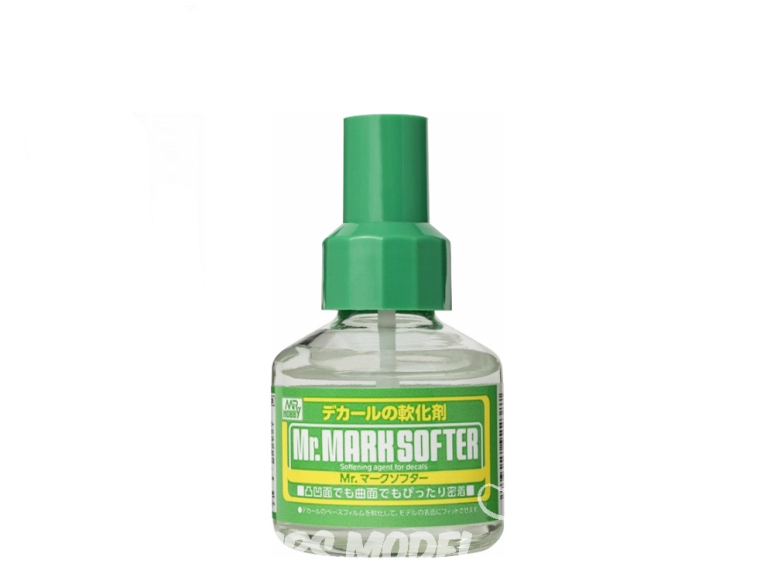 Mr Mark Softer produit pour faciliter l'application des décalcomanies en les assouplissant afin d'epouser au plus prés la forme favorisant ainssi leur adhérence.