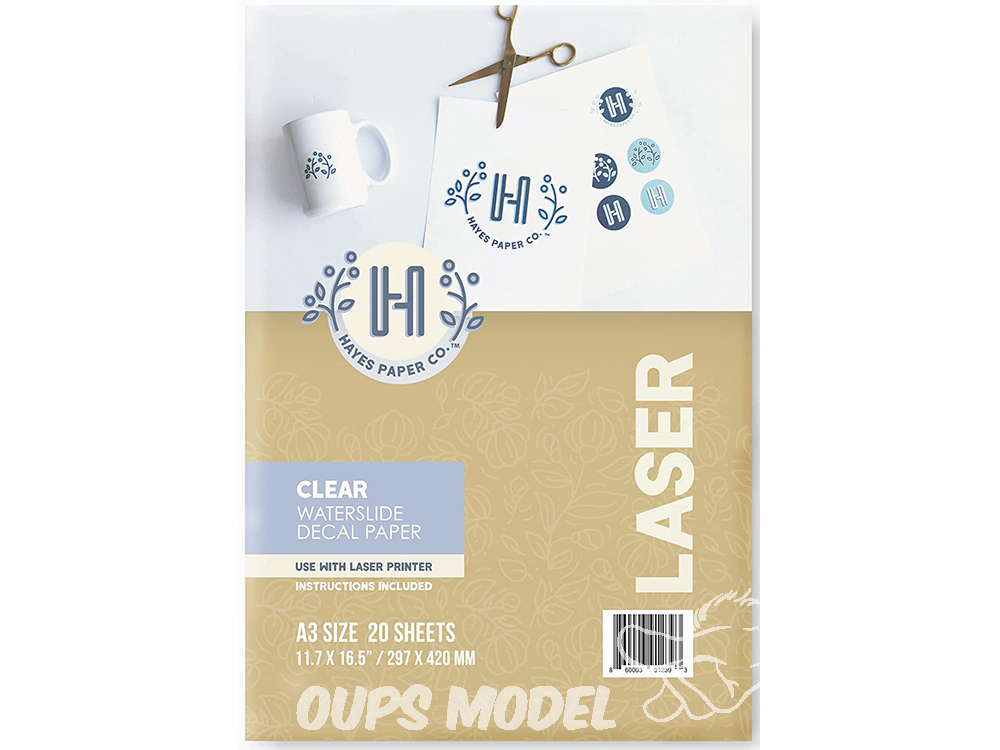 Papier décalcomanies transparent pour imprimante laser A3 x20 feuilles.