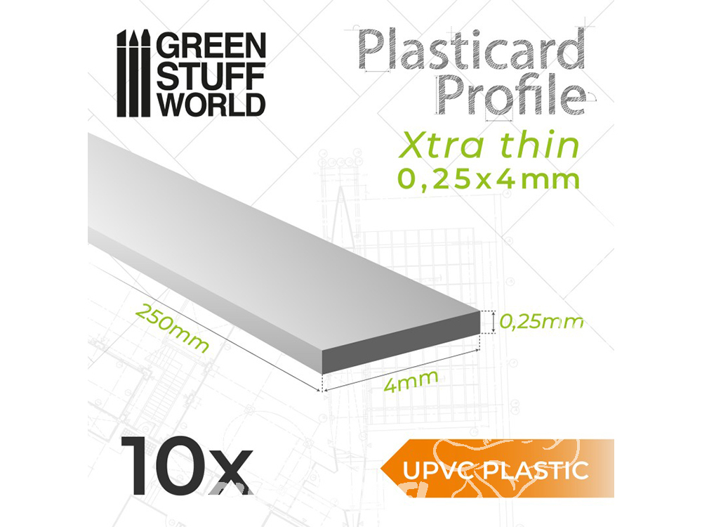 Green Stuff 503264 uPVC Plasticard Profilé Extra-fin 0.25mm x 4mm