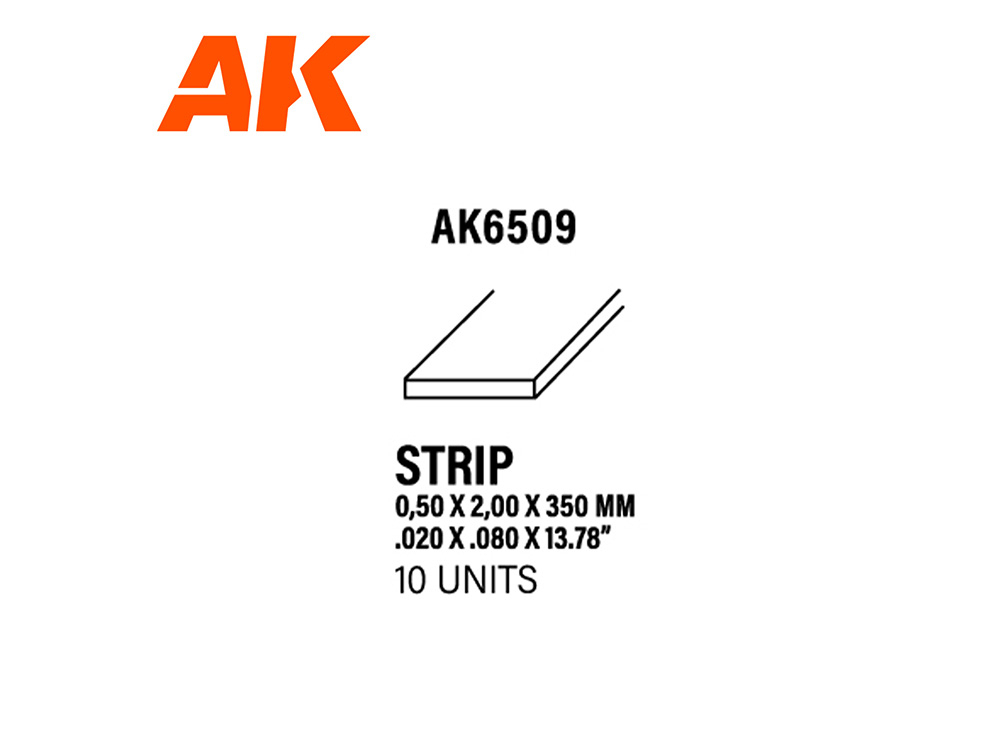 AK interactive ak6509 Bandes 0.50 x 2.00 x 350mm STYRENE STRIP 10 unités
