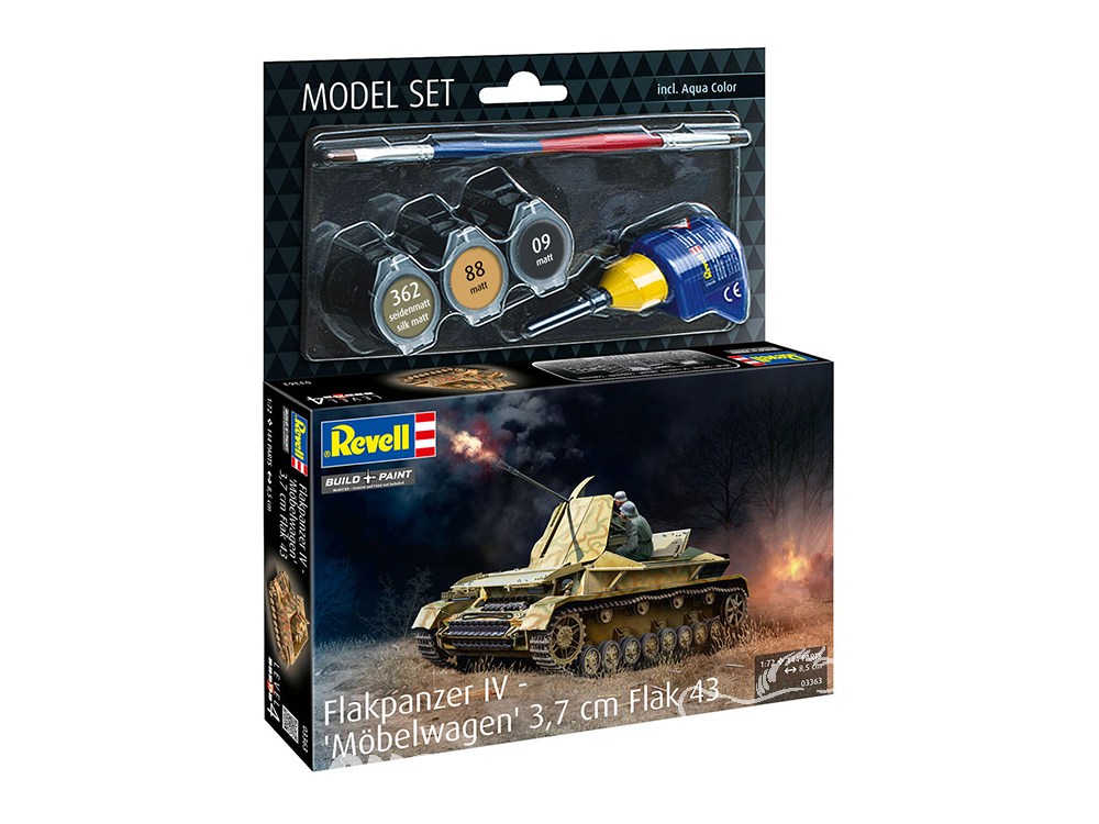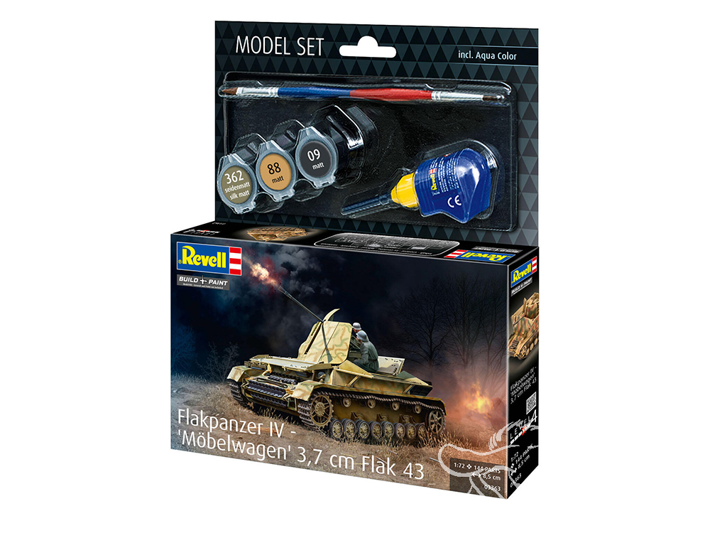Kit de modélisme en plastique (non assemblé) Notice d'assemblage multilingue illustrée Décalcomanies Couleurs de base (Revell Aqua Color) Colle (Revell Contacta Professional Mini) Pinceau