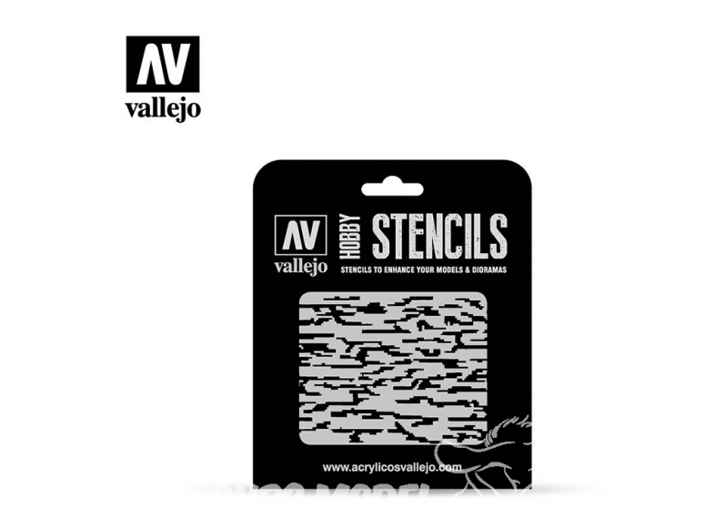 Pochoirs Vallejo Hobby Camouflage pixelisé moderne pour véhicules blindés et avions dans les zones de combat urbaines. Échelle 1/35 et 1/32..
