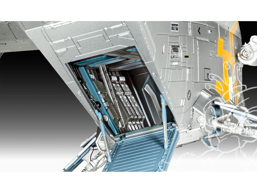 - Flexibilité totale : Décidez vous-même de la manière dont vous présentez votre navire. Construisez les portes d'entrée et la grande rampe de chargement arrière soit ouvertes (pour une vue à l'intérieur), soit fermées.