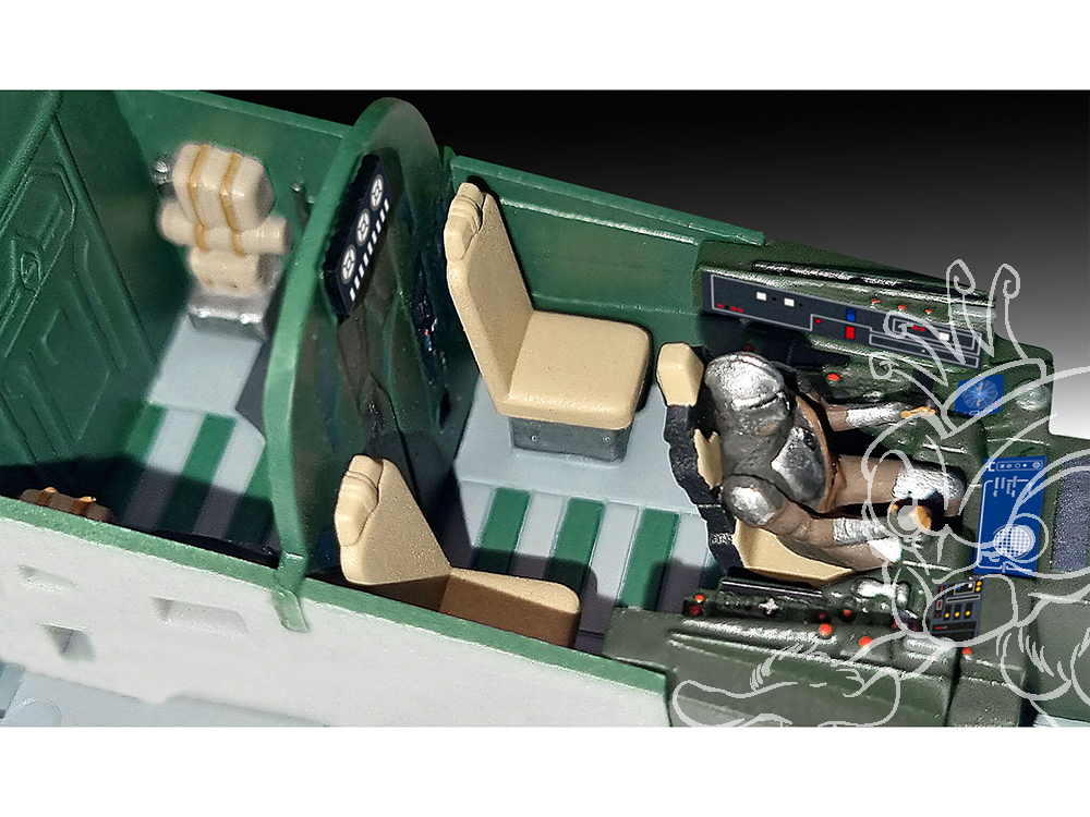 - La vie à bord : Le cockpit est détaillé et contient une figurine de pilote qui donne au modèle un aspect vivant.