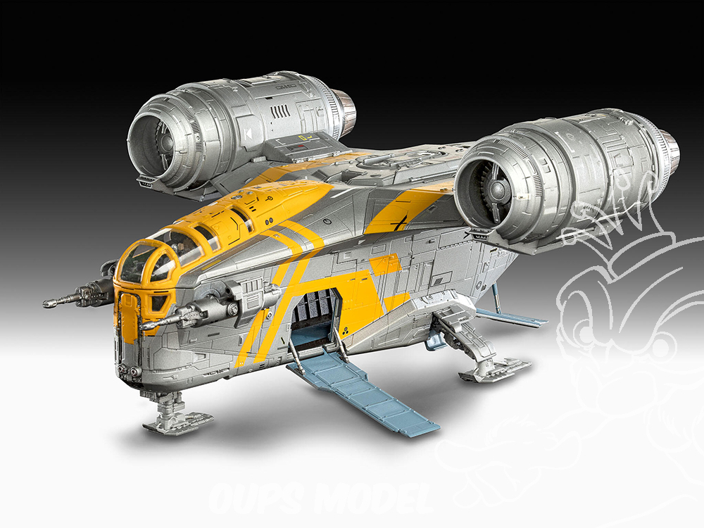 Construire le Razor Crest est un plaisir pour tous les fans de Star Wars. La forme distinctive du fuselage, les énormes moteurs et l'aspect métallique usé offrent suffisamment de place pour des effets de peinture et de vieillissement détaillés. Grâce aux options de construction (rampe de chargement, châssis), vous pouvez adapter le modèle exactement à vos idées.