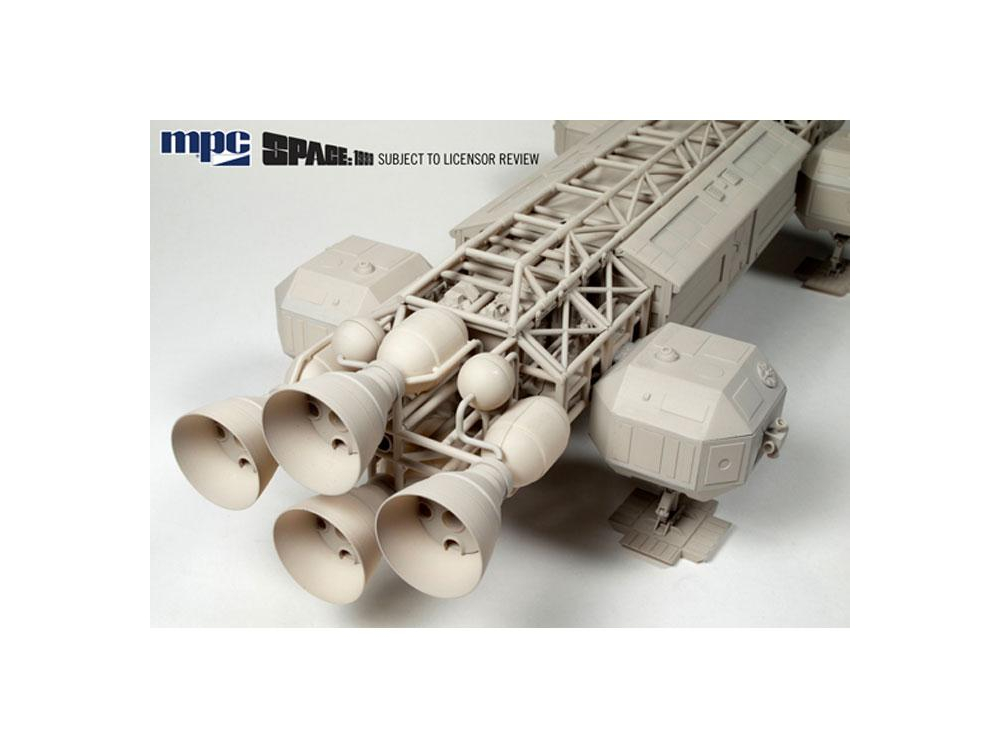 Cosmos 1999 / Eagle 1 Transporteur 55cm. Maquette en édition limitée du mythique vaisseau spatial Eagle 1 de la série télé COSMOS 1999. Après avoir sorti le vaisseau en 30 cm de long en version standard et en version luxe, MPC vous propose de le réaliser en un large format de 55 cm de long et avec de fins détails. Une recherche exhaustive et précise a été réalisée à l'usine afin de reproduire une maquette d’anthologie moulée en plastique blanc et transparent et composée de plus de 300 pièces. Les pilotes du vaisseau seront inclus. Un kit complémentaire avec des pièces en aluminium pour le train d'atterrissage et 12 pièces de remplacement pour les moteurs sera également disponible (sous réserves de modifications).
