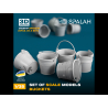 Ensemble de maquettes "Seaux" (5 pcs). Échelle 1:35. Les modèles sont réalisés par impression 3D avec une résine photopolymère de haute qualité, présentant un haut niveau de détail et une reproduction réaliste des formes. Ils viennent avec des supports. Les seaux sont des articles ménagers polyvalents qui ont été largement utilisés dans divers contextes, notamment militaires et domestiques. L'ensemble comprend 5 seaux, qui peuvent être utilisés dans des dioramas pour créer des scènes réalistes de tous les jours ou de travail. L'ensemble comprend des seaux présentant différents degrés de dégâts. Parfait pour les collectionneurs, les modélistes et comme élément supplémentaire pour améliorer diverses scènes de modélisation.