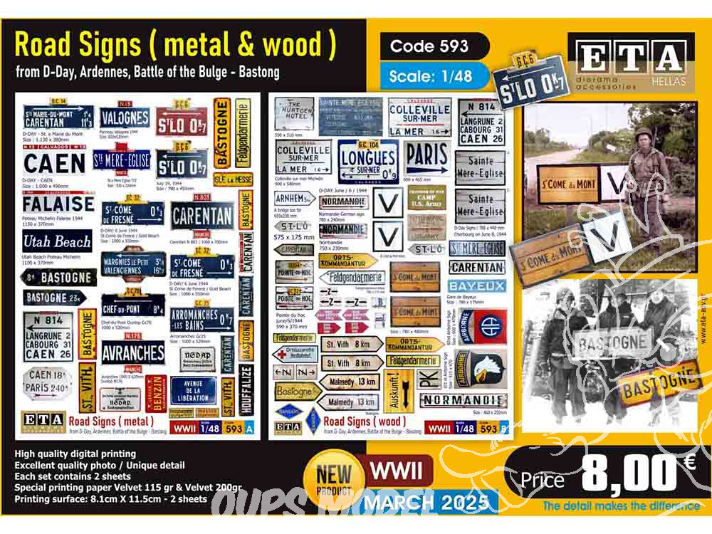 econde Guerre mondiale Panneaux de signalisation façon métal et bois 1/48.