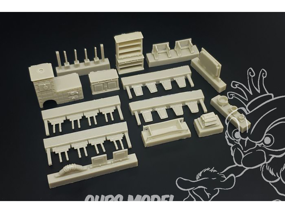 Meubles de cuisine 1/72, résine à peindre pour diorama a l'échelle 1/72.