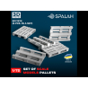 Ensemble de 3 maquettes de palettes à l'échelle 1/72. Réalisées par impression 3D en résine photopolymère haute qualité, ces maquettes présentent un niveau de détail élevé. Supports inclus. Les palettes sont des éléments polyvalents utilisés pour le transport et le stockage de marchandises diverses. Cet ensemble comprend 3 maquettes détaillées de palettes, reproduisant fidèlement leur structure et leurs dimensions. Idéal pour les collectionneurs, les maquettistes et pour la création de dioramas industriels, militaires ou domestiques.